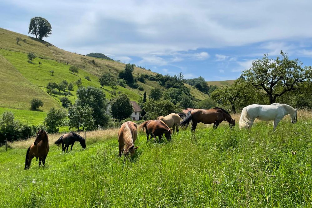 In der Höhe des wunderschönen Solothurner Juras, eingebettet in eine idyllische, hüglige Landschaft in der Gemeinde Wisen SO, liegt unser Landwirtschaftsbetrieb Tannhubel. Unser Hof auf 690 Meter über Meer, ist umgeben von einem wunderschönen und vielseitigen Reitgebiet in der Juraschutzzone. Diese Ausgangslage, unsere langjährige Erfahrung und Leidenschaft für Pferde garantieren das Beste für ihren vierbeinigen Freund.